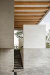 The structure is resolved through exposed concrete walls and beams. One of the main elements—a visible longitudinal beam—defines the project’s organizational axis and supports the roof, marking transitions between areas and reinforcing the linear reading of the house. The use of concrete as both structure and finish responds to criteria of durability, low maintenance, and thermal efficiency. Its natural texture is left exposed, generating an honest expression consistent with the project’s overall language.