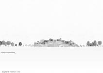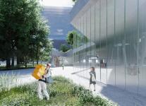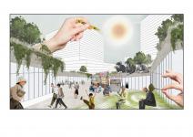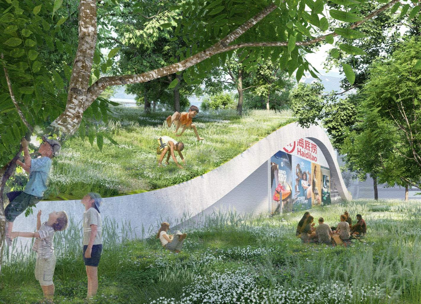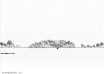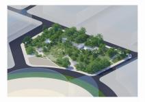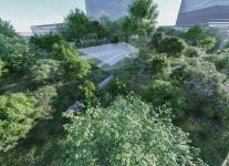 The shopping mall is conceived as a hill, an artificial topography lifted gently from the ground. A park is not placed beside the mall. The park becomes the mall. Trees, meadows, and winding paths blanket the building, allowing nature to reclaim a dense urban core. From the street, the architecture almost disappears beneath vegetation, offering a visual and emotional pause amid the surrounding towers.