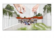 In a city compressed by density, speed, and glass façades competing for attention, this project proposes a different presence. One that recedes instead of rises, one that breathes instead of performs. Rather than another enclosed, object-like mall, the design rethinks the shopping center as a landscape where commerce dissolves into everyday life.