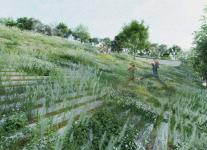 The project draws inspiration from the memory of late afternoon markets. Informal, shaded, social spaces where commerce and community coexist. Circulation follows the logic of walking through a landscape rather than navigating corridors. Slow ramps, stairs carved into the terrain, open courtyards, and shaded clearings replace the rigid grid of conventional malls. Retail spaces unfold organically beneath the hill, opening toward courtyards and green pockets, blurring the boundary between interior and exterior.