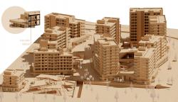 The balance of solids and voids of the project articulates the building in human-scaled fragments, while the system of terraces, setbacks, and base configuration as the primary elements shaping the overall form of the Velux Plus.