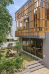 Facade Materials: Corten steel box, MS strip screening, cement fluted sheets, stone cladding