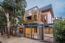 Given the site’s narrow frontage, elongated depth, and closely built surroundings, the planning strategy focuses on drawing natural light deep into the interiors and creating layered spatial experiences. Gardens, open-to-sky pockets, and visual corridors are carefully integrated to ensure the home feels expansive, airy, and inwardly focused despite its urban context.