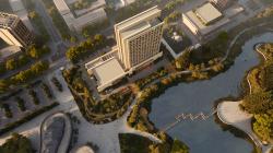 The architectural form draws inspiration from the surrounding breathtaking canyon landscapes. The design abstracts and refines the geological movement of the Tianshan folded rock layers, deconstructing the tower into multiple staggered units to evoke the imagery of a dynamic canyon. Rising by the waterfront, the tower's 280 guest rooms frame a captivating view of the Tianshan snow peaks, the city skyline, and the wetland park.