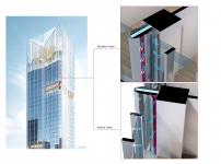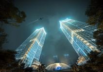 The design employs the phoenix as a metaphor, envisioning a future-oriented financial hub where talents gather. The symmetrical twin towers form a striking gateway, with their split forms resembling phoenix wings, creating a bold and iconic landmark.