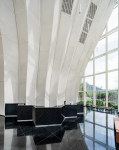 The main exhibition hall is supported by four giant silo-shaped shear walls, integrating facilities such as exhibition halls inside. The 25-meter-high vertical atrium between the silos makes the exhibition hall column-free and spacious, facilitating the display of large-scale installations. The north-facing skylight brings in soft light to the exhibition area. In response to the hot and humid climate in Fujian, the building features an inclined roof for rapid drainage and a roof with thick soil covering for heat insulation. The lighting and functional layout are reasonably planned, and the equipment is hidden in the technical layer of the roof, making the building resemble a green hill.