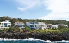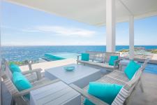 Beach front residence sits on a 1120 m2 sloped plot, with the entrance to the main villa from the street level and the entrance to the rental villa from the lower ground floor. The design features big balconies and terraces, a cantilever infinity swimming pool, big open spaces, endless views of the Caribbean Sea, large ceiling to floor windows. The form and shape of the villa is elegant and contemporary, with clean lines and a minimalist aesthetic.