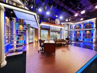 The studio design stands out with its predominant use of wood materials. The architects focused on wood to create a warm and inviting atmosphere. On the left side of the studio is a cozy area for engaging conversations with guests, in the center is an impressive performance stage, and on the right is the designated area for the music band. Seascape visuals were used in the window areas to enhance the sense of depth in the space. Custom-designed LED plexiglass ambient lights with color-changing capabilities enrich the aesthetic details and present viewers with a visual spectacle.
