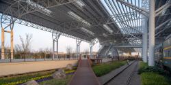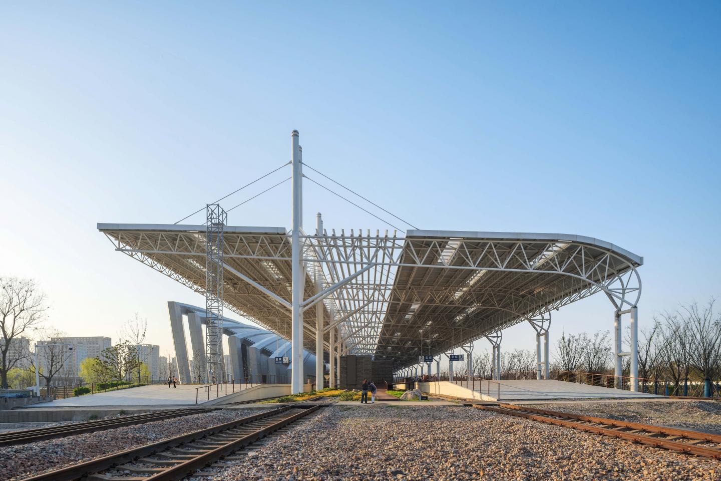 The initial survey revealed that the desolate atmosphere on site left the deepest impression on the architect. The platform, which has just been discontinued, has not suffered much damage to elements such as steel columns, truss canopies, and railway tracks, as if expressing a desire to withdraw from the historical stage. As part of the overall revitalization plan for the railway station area, there are wetland museums, wetland parks, five-star hotels, international conference centers, and other businesses distributed around it. The railway park serves as a connector, closely linking various functional blocks to form a pedestrian landscape axis.