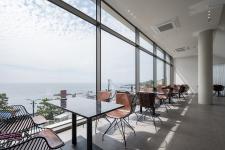 Going up to the second floor along the two stairs formed in the mass that rises on both sides of the building, there are spaces that contain the East Sea scenery, where the settlement and movement coexist inside and outside.