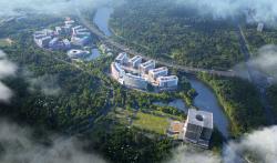 Facing the undulating hills and terrains, the design reserves the existing landscape and creates efficient traffic systems to balance all functions. The design delivers a campus environment embraced by the surrounding landscape and serene water features.