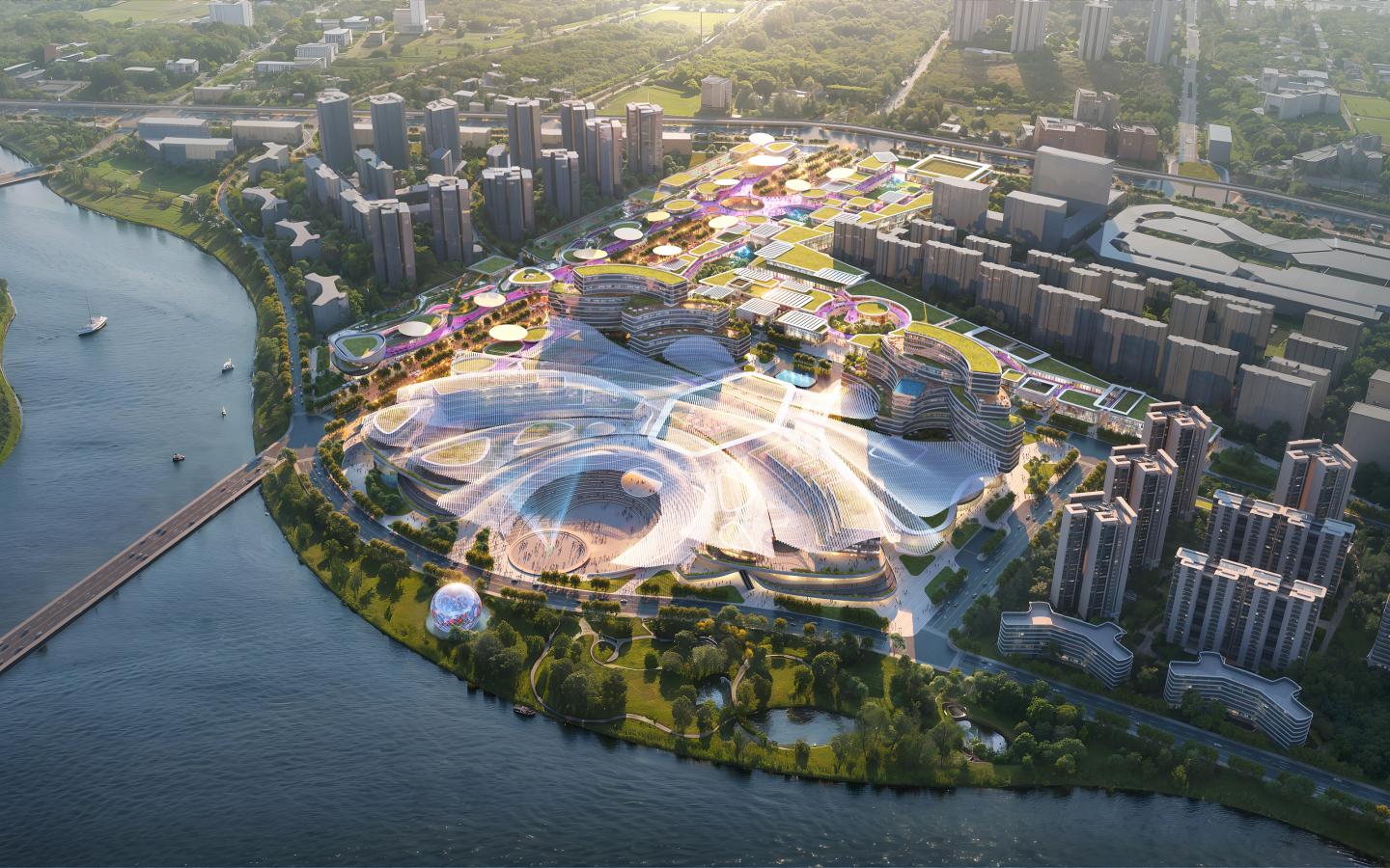 The project features pioneer e-sports, a convention center, offices, luxury hotels and apartments, retail business clusters, and waterfront floating island commercial clusters, comprising six major cultural and commercial clusters that form a self-sufficient business district. It establishes a holistic commercial and lifestyle ecosystem interconnected by businesses, blending reality with virtual elements, introducing e-sports into daily life, and creating a trendy and vibrant future metropolis for the Z generation.