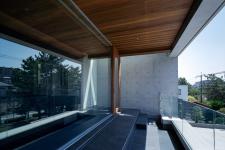 There are two private rooms with windows looking out towards the street trees and two private rooms with windows facing the layer between the concrete tube and the walls of the private rooms, where the exposed concrete walls come into view.