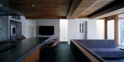 The second-floor LDK (living, dining, and kitchen) area, wrapped in the concrete tube, is a space that opens up to the view beyond the opening. We have created a layer between the concrete tube and the walls of the private rooms on the ground floor, allowing light and breezes to pass through.