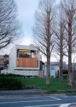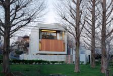 The client requested a house where the family can enjoy the view of the street trees and suggested using exposed concrete.