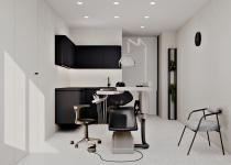 All furniture in the clinic features a sleek black design, adding sophistication to the overall look.