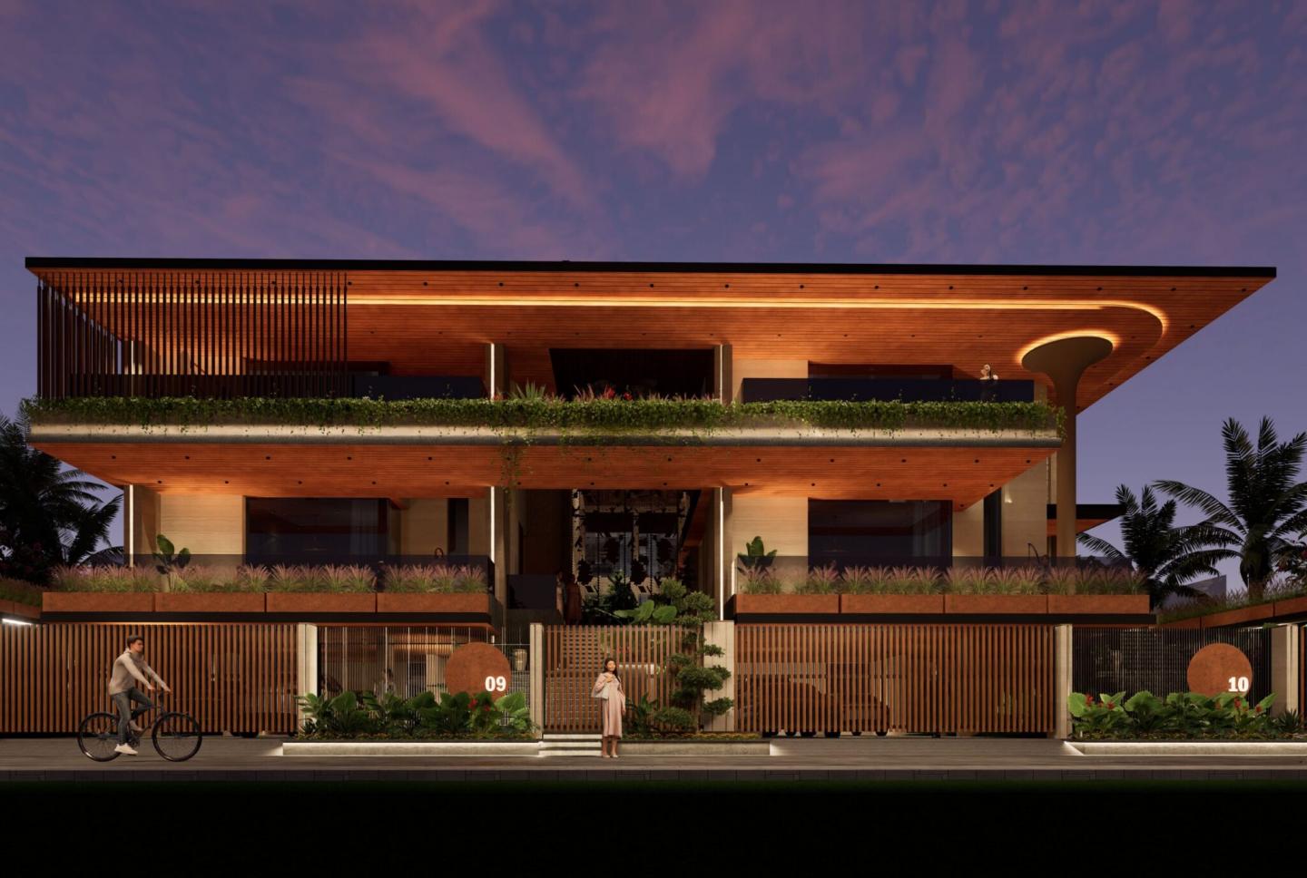 Materiality plays a key role Kota stone, exposed concrete, natural wood, and matte-finish metal elements are used to create both visual richness and thermal responsiveness. The seamless interplay between built and open spaces ensures cross-ventilation, daylight optimization, and strong indoor-outdoor relationships.