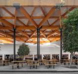 From the beginning, a food court was defined that would not be an alien insertion into the zoo or Chapultepec Forest, but rather, in its appearance, language, and connection with the environment, it would become part of the place. Therefore, the choice of laminated wood as the main element stemmed from the need to use a material that was part of the forest. As it is a space for common use and socialization, it had to be an open area with shade for the enjoyment and recreation of many people. Thus, the main covering, made up of a laminated wood roof with a triangular pattern, was designed based on the structure of a beehive as a symbolic representation of community, which is achieved through food as an act of coexistence, meeting, and gathering among family and friends.