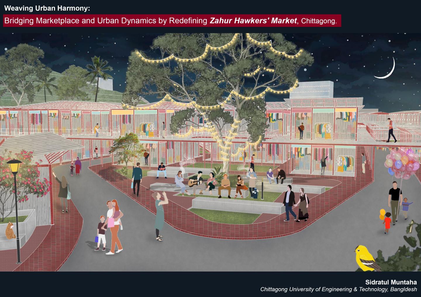 Weaving Urban Harmony: Bridging Commerce and Urban dynamics by redefining Zahur Hawkers Market, Chittagong. by Sidratul Muntaha in Bangladesh won the WA Award Cycle 50. Please find below the WA Award poster for this project.