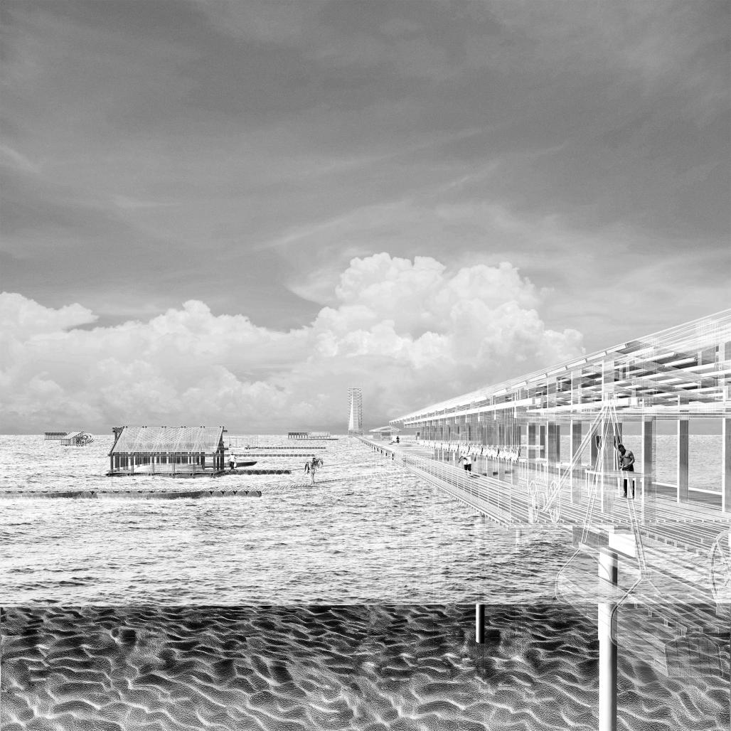 By recognizing the inevitability of change, the intervention does not reject the existing structure but reinterprets it. It embraces the line drawn across the liquid expanse, reimagining it as a point of convergence rather than division. Through this new trace, the project offers an opportunity to reconcile community and nature, creating spaces that revive artisanal practices, restore ecological balance, and establish a renewed relationship with the horizon, one that respects, rather than dominates, the ever-evolving landscape.
