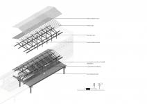 Wood structures are raised on the concrete portuary infrastructure, allowing the reinstatement of the structure with nature and people.