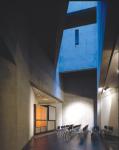 from the wood roofs and is drawn to ducts at the perimeter walls. All the lighting had to be contained within these forms. {Overhead lighting is used only in emergencies.}