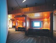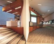 The lecture space is linked by similar networks, programs and equipment to that in the group stations but is fitted with a 75-inch monitor. In addition, a small fold out lectern- mounted monitor is provided so that a speaker can see the presentation in progress while his back is to this presentation screen.