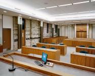 The complex contains 5 courtrooms, a motions room, together with related judicial, courts administration, and holding facilities. The design solution successfully met the