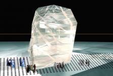 The building proposed for the Tittot Glass Art Museum is thought as a scaled up crystal.