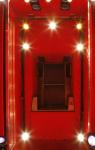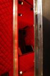 The audience sitting area incorporates a peep-booth chair with red padded velvet around.