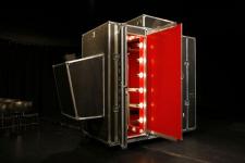 The actor background is a flexible plug-in system where different sets can be exchanged depending on the play requirements.