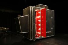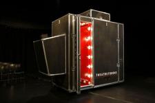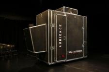 Theater for One uses the ‘road-box’ technology to configure a space for one actor and one audience member. The entrances for actor and audience are positioned on opposite sides. A hard shatter pulls out at the start of the play to connect the two spaces.