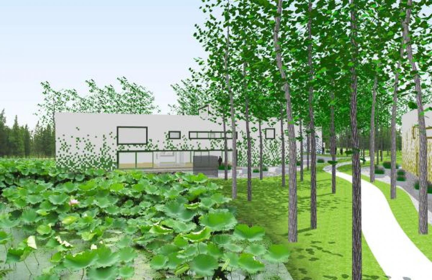 The F artist village in Xixi wetland consists of 5 modern courtyards. Since the site is surrounded three sides by the water, the layout of the 5 courtyards is like five drops of water on a lotus leaf, easy and free, written into the site like the Chinese character of water. The prototype of the courtyard is the courtyard in Guozhuang Garden in Hangzhou, which shows us classical treatment of space between inside and outside, for example with broad and wide windows like panorama, and the small window like focus lens, to catch different kinds of landscape.