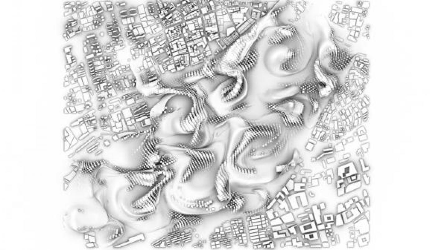 Behavioural patterns and information embedded in fluid dynamics are integrated by research on space composition and form, based on relation between object and field and variance between parts, which install differences in degree and kind in the elements of the proposed cityscape within an overall coherent order.