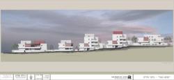 Ahuzat Tamar neighborhood had a triangular plot and a program of around 35 cottages, on a territory too small to contain them. We solved this problem by transferring 10% of the dwelling units permitted by the urban plan to another territory, owned by the same client, and by using a building typology of two dwelling units on one plot; one on top of another, while the roof of the bottom unit is the garden of the top unit.