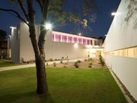 Reinforcing the fledgling performing arts stream, the new facility signifies this change by the intervention of a contemporary building into a historically significant precinct and prominent location on the grounds. Bridging between existing traditional building stock, the performing art facility nestles comfortably within a grove of established trees in the manicured landscape. The splayed wings of the building offered to the driveway drawing one to the glazed entry and within.
