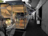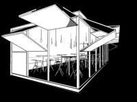 This project deals with creating an "idea” for a coffee shop that sells pastry, sweets and ice cream in Civitavecchia {Rome}.These are the reasons behind the name: Venti: the evening | pre-dinner drink time; Nove: breakfast | morning coffee time; Dodici: brunch | lunch. The name was selected by both the architect and contractor who wanted to create a “strong” and “recognizable” identity for a type of entertainment that often seems overdone. We have used strategies and extreme individualization techniques that are often used by American coffee shops {chains}; our project should highlight a sort of “slow food” in a warm and clearly urban setting. In fact, the glass store front facing the sidewalk is light and has no paneling so that in the summer or when the weather is good, if a warm breeze should happen to blow through the city, it can be opened completely, inviting those passing-by to stop in. The temptation is to be watched or to watch people, mindless of others. It is clear that we have particularly focused our attention on the “inside-outside” idea. The outside window can easily be transformed into an awning {as protection from the rain} to create a tiny little “urban, virtual” square. The windows for the evening are transformed into a mirror and so long as they are open, they invite the passer-bys to play the game of “look but don’t be seen” but no the other way around. The warmth of the structure is emphasized by the emotional involvement of the architecture, attracting and inviting clients to eat in. The goal of the project was to create a place, an informal meeting point, which helps bring the community together in this urban setting.