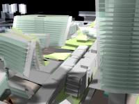 RECLAIMING THE CITY- URBAN NEXUS 2020 {2001-2003}; Design & Research: Suprio Bhattacharjee / 3D renderings: Neville Fernandes; PUBLICATION: `Archiprix International 2001/2003`, O1Opubishers, NAi, Rotterdam, 2004; BRIEF: Sustainable Infrastructure and Growth Model for dense cities such as Mumbai. Station redeveloped with speculative development, retail, a hotel, cultural facilities {two 500-seater auditoria and a 1000-seat concert hall} along with a multiplex cinema with 5 screens. Project involved the use of green roofs over concrete slabs acting as heat sinks cooling the station below, self-shading strategy in the orientation of towers, bio-climatic design principles for the office towers such as east-west orientation, narrow floor plates {average width 12-14m} to maximize daylight penetration and natural ventilation, use of terracotta and GRC jaalis on the south façade of office towers and planted terraces {sky gardens} on sunward sides.; ISSUES: This prospective global city faces crises at multitude levels. Placeless objects in the name of new age architecture are slowly obliterating a sense of cohesive social structure and unique scale specific to each place and community – does the city loose its layered identity in favour of a place-less plastic imagery? Besides, the city needs to address other issues important for its survival – such as sustainable models of growth, the issue of sprawl; and the indiscriminate destruction of verdant land and natural eco-systems for development purposes when brownfield and greyfield sites are more than available. ; THE CITY AS A HYPER-NETWORKED ENTITY: The premise of this project works on the reality that the city functions as a series of node-places where each railway station becomes the hub of each suburb – since it is most accessible. Going on the dictum of maximum density at the place of maximum connectivity, a city structure for Bombay can be envisaged wherein each suburb shall act as a self-sustaining fragment of a larger urban system – connected by a web of non-linear mass movement system, creating a hyper-networked entity. This would encourage and initiate balanced growth within the city and would ensure a sustainable vision for the city into the future.; ARCHITECTURE AS BEING EMBEDDED: URBAN NEXUS – RECLAIMING THE CITY – PROJECT FOR THE ANDHERI INTERMODAL: Large-scale architectural interventions can evolve from the forces that inhabit the site to become extensions of the city, embedding themselves in diverse immediate conditions while being differentially scaled so that each part responds to a specific and changing urban situation – pieces of cityscape rather than an imposed monolith. About a million and a half people use the Andheri Station Precinct every day. In addition to being a center of small-scale industry and a prominent dormitory suburb, andheri has become the unofficial hub of the service industry in the city, a fact aided by its strategic geographic centrality, its proximity to the international airport and a growing hotel and business district. This project was conceived in anticipation of such a growth. Contradicting the official stand of the city government, it proposed an intensification of the urban experience at the station through a densely layered spatial organisation – all integrated into one seamless whole. The station site was imagined as a crossing point or a ‘nexus’ in a city traditionally divided into inaccessible easts and wests by broad swathes of railway tracks cutting across it. The project would need to suture these deep gashes - healing the cityscape and reclaiming precious land lost. Conceptually, it begins with stretching across a membrane of connectivity forming a fluid public space allowing for visual clarity and easy orientation. This membrane becomes the crossing or nexus accommodating a number of super-imposed built forms hovering above. These would be of two kinds – low-scaled linear multi-use buildings oriented N-S along courtyard spines t