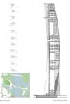 the location of the tower, in the heart of the central lake park, at the intersection of two visual, waterway and public axes determines primarily the form and visual perception of the tower.
