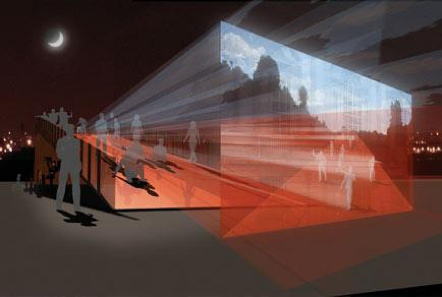 The wedge offers an altered viewpoint of a familiar place by elevating individuals and events by a full storey height on the secure and fully accessible viewing platform. It also creates a virtual wedge in the space that surrounds beam mobile that will be explored using interactive technologies to learn about each place it visits.
