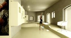 TS1 is developed on three levels with a reception point on the ground floor and a bar and relax area on the second floor. All the floors are anyway destined to the exhibition and selling functions.