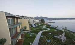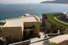 Nestled on a seafront bay, the property uniquely coexists within the hillside topography.  The diverse programmatic elements of the design all curve, shift and shape according to the topography and sea views. The resort has a 66 room hotel, 13 private residences, health spa, restaurants, and other recreational and leisure activities.  The intention of the design is to create a contemporary and transcendental atmosphere.
