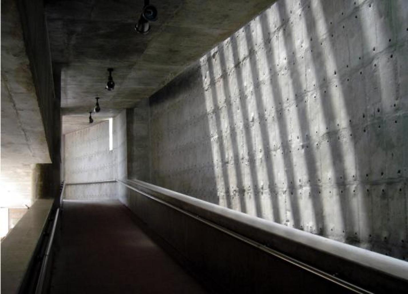 The curved concrete wall of ramp is a road designed to take the disable people on the top of their ability is very much monumental yet democratic because of its transparency at the opposite side of the wall. In fact, it is a proposition to create a sense of accessibility for all. Traditional forms like courtyard and terraces with hanging lawns in the southeast are being used to create the sub-continental comfort.