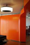 This is a device that is undulating and organic in nature, beginning at framing the entrance area, and winding its way through the office space, harnessing various elements,