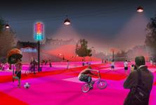 Superkilen is located in the heart of outer Nørrebro, which has a local population from 57 different cultures. The urban project is conceived as a machine of integration across ethnicity, religion, culture and languages.