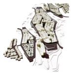 In the design, the built up area has been compressed to occupy only 50% of the site as an immediate reaction to the sun conditions to achieve a compact shaded fabric: its structure is defined by alternating narrow pedestrian alleys and small squares, typical of Arabic towns. This urban tissue is divided in elongated islands that are orientated so to gain from the prevailing winds crossing the site. The cool breeze from the sea is channeled between the islands and through the longitudinal cuts in the urban fabric, while the hot wind from the desert is deviated above the development. Natural ventilation is enhanced by a rugged skyline breaking up air flows on the scale of both low rises and towers. Similar dynamics determine the formations of the dunes in the desert, thus the development appears as dunescape where the urban islands could be interpreted as a consolidation of the desert dunes.