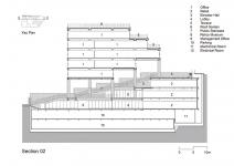 The building doesn't solely cater to visitors but also provides functional spaces for office users. Five floors of office space are seamlessly juxtaposed, featuring a separate circulation system to ensure a smooth flow of occupants. Roof gardens and terrace spaces were incorporated, offering office users a place to unwind and appreciate the surrounding views.
