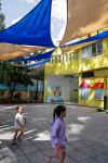 Safety is the foundation of any space designed for children. The shading structures in District 1 are built with this in mind. The chosen HDPE fabric is non-toxic and UV-resistant, ensuring it poses no health risks while being durable enough to withstand the region’s intense sunlight. The steel columns are securely anchored into concrete footings, providing stability and eliminating the risk of tipping. Additionally, the columns are strategically placed away from the center of the playground, ensuring that children can play safely.