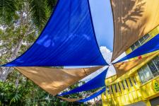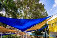 Beyond functionality, these shading structures add a burst of color and life to the kindergarten playgrounds. The vibrant, cheerful colors of the fabric transform the playgrounds into inviting and stimulating environments. This visual appeal is more than superficial; it significantly enhances the children’s learning experience. Bright colors stimulate the brain, making the playground a more engaging and enjoyable space. The overlapping triangular sails create dynamic patterns that capture young children's imaginations, turning the playground into a visually rich environment that encourages creativity and exploration.