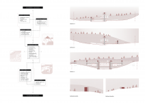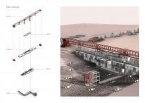 'Gatherer' aims to bring all the people here together and to be united. 'Rehabilitator' is related to the process of the soil, is aimed at researchers and engineers, and includes laboratories and offices. 'Awakener' is for visitors, aims to awaken and raise awareness, includes simulation hub, information hubs, exhibition, workshop and study areas. 'Detailer' closely monitors the soil, observes and stores, is connected to the observation tower and sample collection slit.